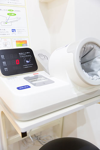 自動で血圧測定が出来ます。少し息が落ち着いた状態になってから測定してみて下さい。