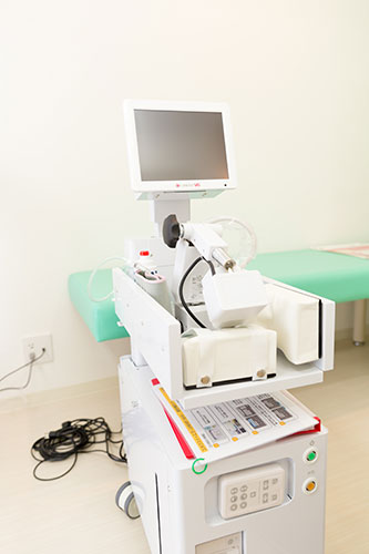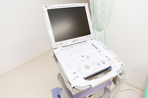 体の表面から超音波を当て、腹部臓器を始めとして各部位の検査に使います。検査部位にもよりますが概ね15分前後で終わります。