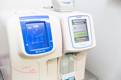 貧血や炎症反応(白血球、CRP)を数分で測定できます。