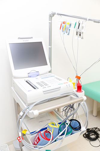 心電図検査は心拍数、リズム、負荷の有無をとらえ心臓病の早期発見や診断に有用です。検査は数分です。